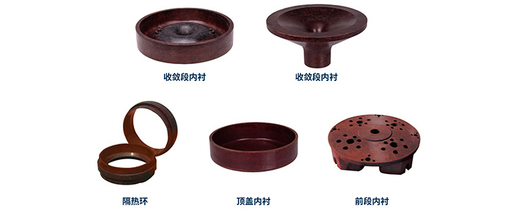 該類產品組件具有良好的耐燒蝕與隔熱性,耐高速燃氣沖刷,可在3000°C、燃氣速度2000m/s沖刷條件下工作 6s 以上。